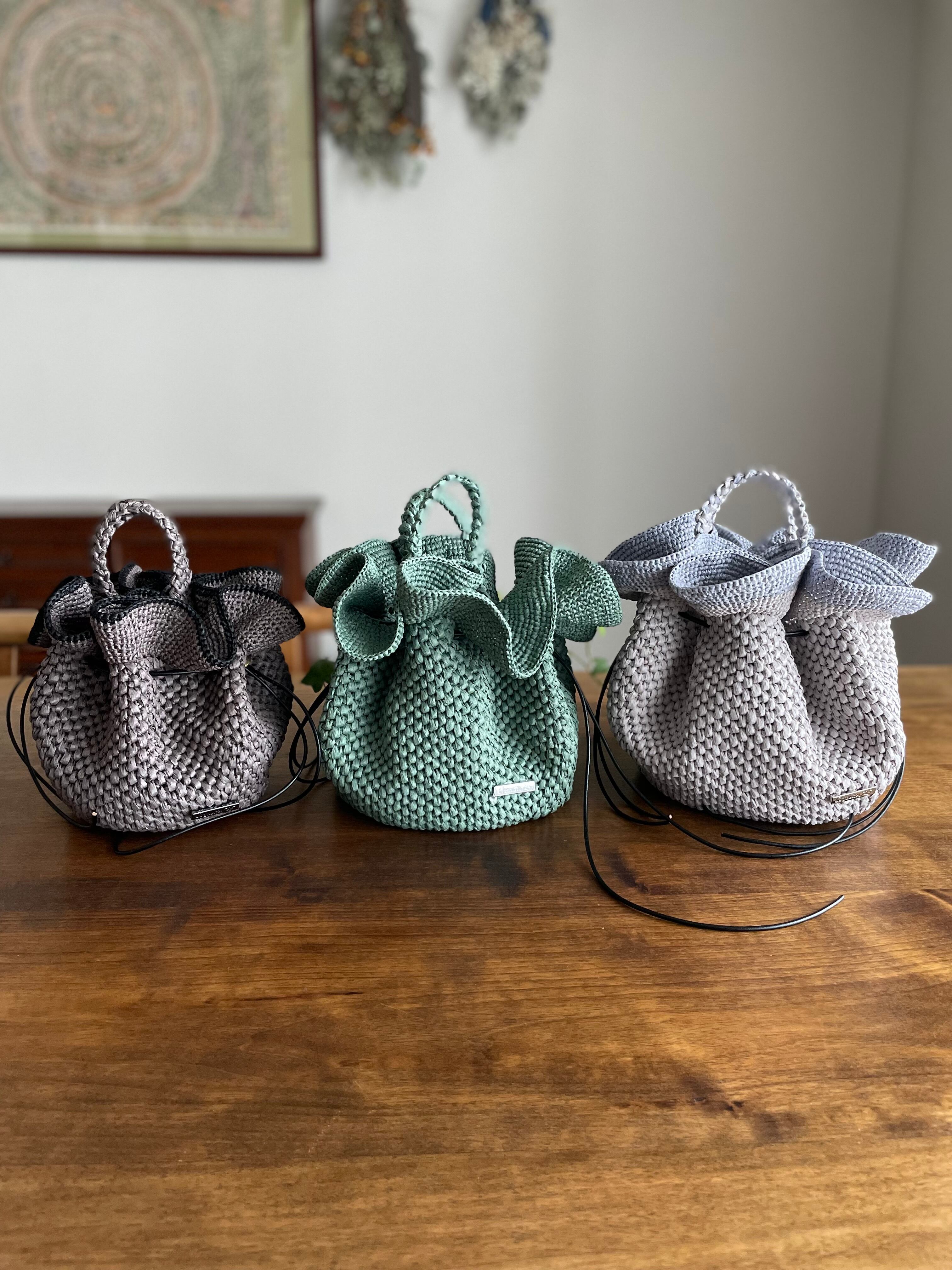 フリルの編み図、持ち手の編み方